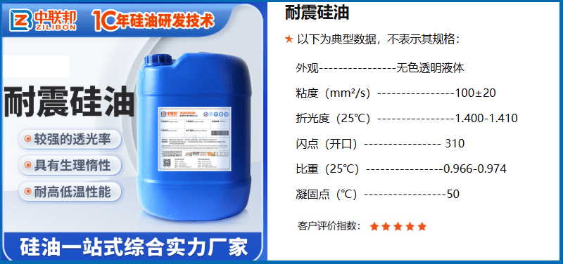耐震硅油是以合成改性高黏度硅油精制而成的长效多功能仪表硅油。广泛用在电机、电器、电子仪表上作为耐温、耐电弧电晕、抗蚀、防潮、防尘的绝缘介质,在各种机械、仪器及压力表中,用作液体防震、阻尼材料。